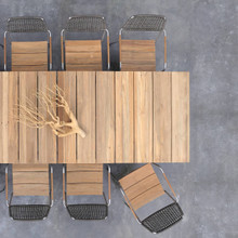 The dynamic legs of this patio table can be adjusted to accommodate a wide variety of outdoor environments and functional requirements, such as accessibility. It's available in two lengths and three tabletop configurations: 3 long slats, 4 long slats and short slats. The different models enable you to seat eight to twelve people comfortably.