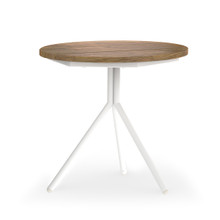 This convenient patio accent table has a simple metal tripod base that comes in aluminum in multiple powder-coated colors, with a round tabletop in recycled teak in multiple neutral and subdued colors. Available in a side table or low table design.