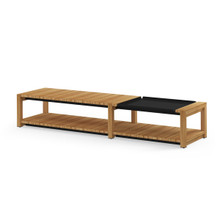 This modern eco-friendly FSC certified teak long coffee table coordinates with the Ekka sectional sofa pieces and can be used to create numerous indoor or outdoor entertaining configurations. Its rich woodgrain frame has a slatted lower shelf and tabletop. The shelf proves a convenient storage area for magazines or snacks, while the top also comes with a handy aluminum tray insert for ice and keeping beverages cold. The metal bin is available in classic tones in a matte or semi-gloss finish, so you can coordinate your table with the rest of your patio decor. The slim design also enables you to create stylish, yet functional, surface areas between the sectional pieces.