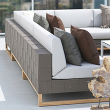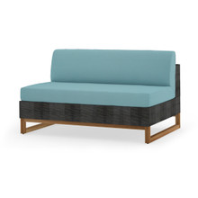 This brilliant armless outdoor seat is a necessary component of any Ekka sectional sofa configuration. Its simple minimalist design complements a wide variety of contemporary decor themes, allowing you to express your individuality without sacrificing style, durability or functionality. The plantation teak base is FSC certified, so you can be sure that the timber was harvested only from environmentally responsible foresters. Like other pieces in the collection, this sofa is covered in durable batyline mesh that resists damage from the elements, while providing a richly textured surface in many classic neutral tones. The seat and back cushions are wrapped in fade-resistant Sunbrella® fabric, which is the premier brand in outdoor textiles. Choose from a wide variety of vivid colors to complement or contrast with your existing outdoor decor.