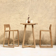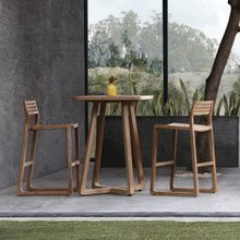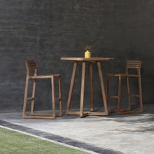 This good-looking patio barstool has an organic modern look with a relaxed vibe. Its tall wooden frame has gently curving lines that soften the corners and highlight the natural beauty of the raw material. Made from premium plantation teak, this stool features slightly reclined seat and backrests with a slatted structure that permits comforting airflow. Its sled-like base has self-adjusting gliders that enure stability on most surfaces. Eco-friendly teak is a naturally oiled hardwood that is well-suited for outdoor furniture. It resists damaged from moisture and heat while remaining strong for decades. The smooth-sanded honey woodgrain transitions through the years to a distinguished grey silver color without treatment.