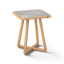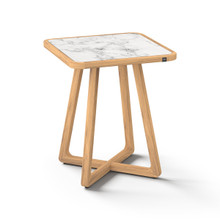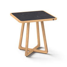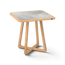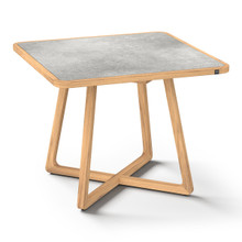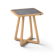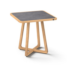 This handsome outdoor counter-height table has an understated elegance and contemporary design. Its minimalist criss-cross base and rounded square frame are crafting using premium plantation teakwood harvested from environmentally responsible forests. The weather-resistant hardwood is naturaly protected against cracking, rotting and warping. It has a rich honey-colored finish that will turn grey over time.