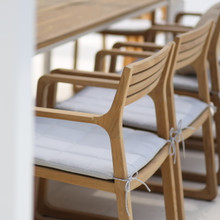 This beautiful patio dining chair is made from premium teak with soft lines and a smooth-sanded surface. Optional padded seat cushions are available in a wide variety of colors.