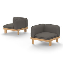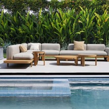 This adaptable modular sofa corner has a smooth-sanded premium teak frame with comfy Sunbrella® upholstery in a variety of fabric colors and patterns.