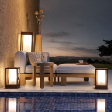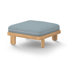 This adaptable patio footstool has clean lines and a friendly feel. Its premium teak square frame and legs have gently curving corners that give it a relaxed vibe. The durable environmentally-friendly hardwood resists cracking, warping and water. Its smooth-sanded woodgrain finish starts with a warm honey color that transitions to a stylish greyish silver.