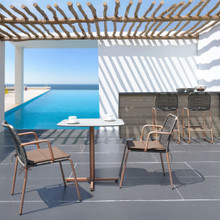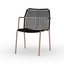 This attractive woven dining chair is just what your outdoor area needs. Its classic yet contemporary design incorporates a pleasant blend of styles and materials. The svelte metal frame has clean lines and is made from aluminum that is powder-coated in a variety of neutral finishes. A timeless round wicker weave is used to fashion the seat and back. The woven synthetic resin is color and weather-resistant, so these chairs will last for many seasons. The all-weather wicker is available in warm honey, snow white, pepper and a striking amazon. If you're looking for addition comfort, or a dash of color, you can add an optional seat cushion. These pads are made from olefin in multiple neutral tones and vibrant solid colors.