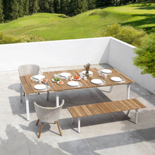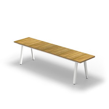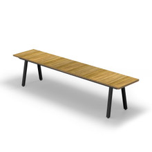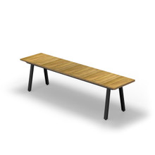 This good-looking outdoor bench has a minimalist design and understated refinement. Its simple frame and splayed legs are made from strong galvanized steel with a semi-gloss or gloss powder-coating. This colorfast finish not only looks great, but will protect the metal from the elements and prevent corrosion. It's also available in stainless steel with a chic hairline finish. The seat is fashioned from slats of reclaimed teak with a rustic brushed finish or smooth-sanded premium plantation teak. This eco-friendly hardwood is weather-resistant, durable and full of character.