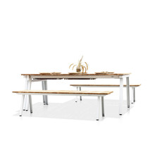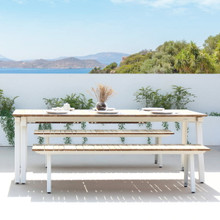 This charming bench is available in three sizes that align with the Maxximus Extension Tables and fixed tables. Add a couple of these long wooden seats to a few Mamagreen chairs to accommodate a large group around an outdoor dining table.
