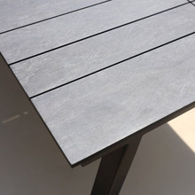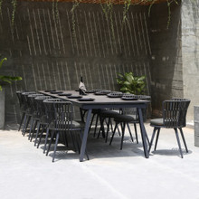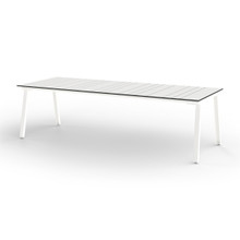 Place a couple of Maxximus Benches or eight to ten chairs around this modern patio dining table to create a memorable al fresco setting. There are multiple protective covers available to ensure that your outdoor dining set is even safer from the environment when not in use.