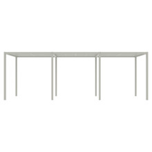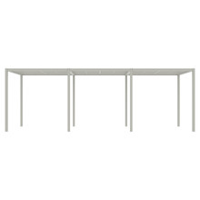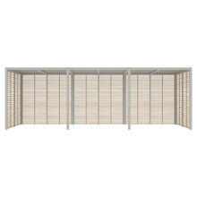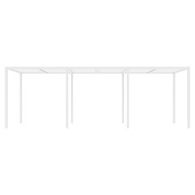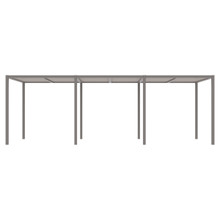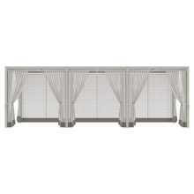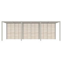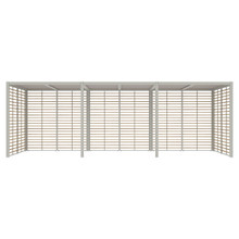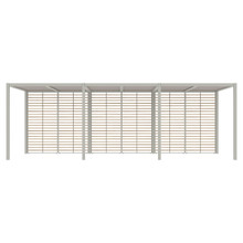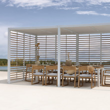 This rectangular 10 x 24 canopy has multiple configurations to satisfy your preferences and environmental needs. The roof is available with a UV-resistant Batyline® solar sling, smooth sanded recycled teak trellis (2 styles) or an aluminum trellis with irregular slats or symmetrical ones. Each option comes in neutral tones that go with the metal frame finishes. The back and walls can be open or outfitted with a combination of trellises and sheer olefin polyester curtains.