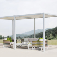 This chic outdoor shade structure has a highly customizable contemporary design and refined look. Its stately aluminum frame is protected against corrosion by a gloss or an ultra-durable semi-gloss powder-coated finish. The electrostatic coating comes in your choice of neutral tones. Mount the framework to stone, concrete or decking or secure it in poured concrete.