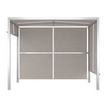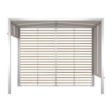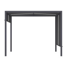 This stunning mid-sized shade structure has a chic contemporary design with clean lines. Its strong 10-foot square stainless steel frame has posts that are 3-inches wide for extra stability. Choose a brilliant hairline finish or opt for an ultra-durable powder-coating in Iron Black, CottonChampagne, Rust or Jet Black. The electrostatic semi-gloss coat gives the metal an additional layer of protection against the elements and allows you to coordinate with your color palette. There are also four neutral matte finishes.