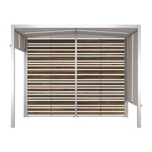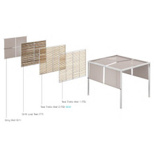 A major benefit of the Sombrero Multi-Position Canopy is that its back wall is highly configurable. You can leave it open, go with a coordinating sling back or choose from one of three recycled teak options. There's an airy trellis with thin horizontal rods in two styles or a more substantial panel with irregular flat slats in your choice of espresso or original drift look woodgrain finishes.