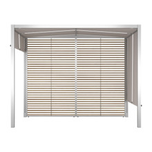 The dynamic roof is constructed using high-performance Batyline® Sling mesh from Serge Ferrari in Black, White and Light Taupe. This premium grade outdoor textile is extremely tear-resistant with high tensile strength and provides protection against harmful UV radiation. Adjust the sling canopy by carefully pulling down one of the ends. The fabric slides up and down the sides and over the top to allow you to block the sun or give yourself a little privacy.