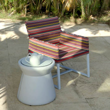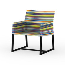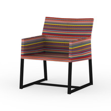 This striking outdoor lounge chair features a durable aluminum frame in seven neutral colors and memorable barcode patterned Twitchell® fabric upholstery in a variety of palettes.