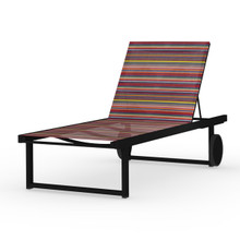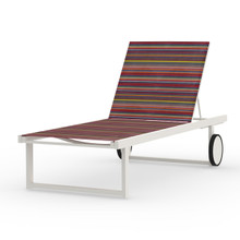 This bright and bold sunlounger has a basic aluminum frame in seven classic neutral shades and a colorful striped barcode pattern Twitchell® fabric sling in a green, red or orange palette.
