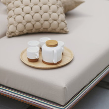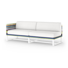 The brightly colored upholstered body is comprised of durable and fade-resistant Twitchell® synthetic material, while its robust seat and back cushions are covered in premium Sunbrella® fabric. This industry leading textile comes in seven bold solid color options. Combine this one armed sectional (available in both left and right arm versions) with your choice of Stripe sectional chaises and armless seats to create your own personal lounge configuration.