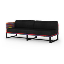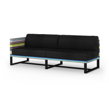 This eye-catching sectional sofa has brilliant barcode pattern upholstery that is inspired by vibrant Navajo textiles. Its clean, simple lines create a minimalist profile that exudes a quiet sophistication, while the stripes infuse a pop of color into this luxury lounge furniture collection. Its broad squared base is crafted from strong, yet light weight powder-coated aluminum in neutral matte sand and ultradurable semi-gloss shades. The colored finish helps protect the framework from the ravages of inclement weather and the harsh rays of the sun.