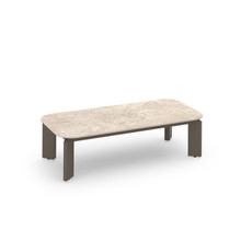 This attractive outdoor coffee table has a strong powder-coated aluminum frame and sintered stone tabletop in three sizes.