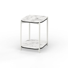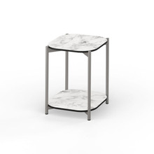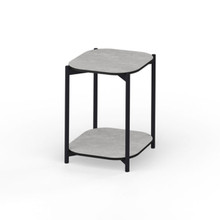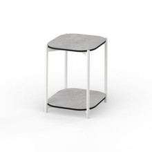 This handy outdoor side table has modern design and strong look. Its sturdy two-tiered aluminum frame is powder-coated in seven matte and semi-gloss neutral finishes. The coating is rust-resistant and allows the table to coordinate with other decor.
