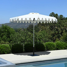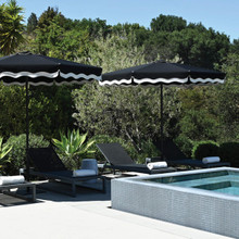 Customize your Shademaker umbrella with one of five designer valances or fringe. Binding options are included with scallops or wavy valances and can be added to the standard. If you have a Gemini, you need to order two.