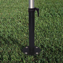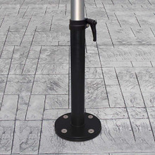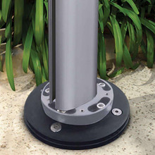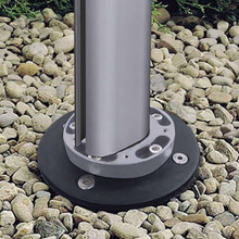 This streamline outdoor umbrella mount has a utilitarian design and minimalist appeal. Its steel construction is designed to safely support a variety of Shademaker umbrellas in multiple settings. One kit is specifically for concrete installations and another for in-ground circumstances. Each of these has variations to accommodate specific umbrella styles. The in-ground version features stabilizing baffles that prevent the umbrella from twisting and the base from loosening. Shademaker recommends using these mounting kits for securing all but the Libra umbrella, but other freestanding base options are available.