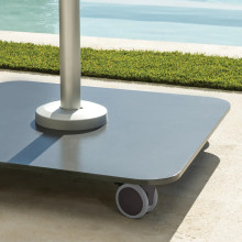 Single plates can be used for Aquarius and Libra umbrellas, although an external stem is required (sold as an add-on with the umbrella). To accommodate larger Shademaker market umbrellas and cantilevers, the plates can be combined in stacks. Review individual umbrella pages for their minimum weight requirements. Optional locking wheels are available to move the base.