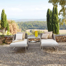 The top is ideal for setting drinks and snacks while the lower surface proveds convenient storage for books, phones or anything you might want protected from the sun. The innovative use of material and textures gives this patio accent table a truly unique look. Combine it with a couple Basket Meridians or Lounge Chairs to create the perfect setting for relaxing outdoors.