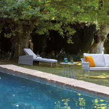 Like all of Sifas' upholstered furniture, the Basket adjustable chaise lounge has a long-lasting foam cushion wrapped in UV-resistant Sunbrella® fabric. The high-quality synthetic textile comes in white or grey chine and will look great for many seasons under the sun. Pair this lounger with a new patio umbrella or one of the chic Basket side tables to create an indulgent oasis of relaxation.