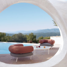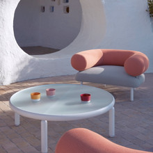 Set this coffee table amid a couple Big Roll Lounge Chairs and sofas to form a bold lounge pit on a wide terrace or alongside a swimming pool.