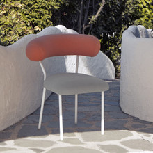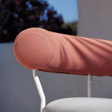 This stunning patio dining chair has an unforgettable modern design and lively feel. Its ample seat cushion and inner tube-like backrest provide plenty of comfort while you enjoy an alfresco meal. The wraparound back and seat are covered in thick yet flexible braided 3D polyester fabric. This contemporary textile has a striking honeycomb texture and is weather-resistant. The two-tone salmon and light grey upholstery gives Big Roll seating a colorful look that's perfect for Summer fun in the sun.
