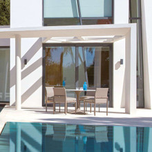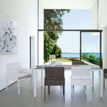 An optional seat cushion is available to provide additional style and comfort. The quick-dry foam is wrapped in Sunbrella fabric in canvas, flannel grey, taupe or a custom premium grade option. Mix and match this contemporary patio dining chair with Komfy Dining Armchairs around a Sifas dining table to form an upscale al fresco setting on your screened-in porch or hardwood deck.