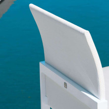 This sharp outdoor dining chair has a clean modern look and simple design. Its spare aluminum frame is protected by a lacquered finish in matte white, grey or mocha. The gently curving backrest is made from aluminum with a woven polyester cover. This PVC-coated material dries quickly and comes in taupe, grey and white to coordinate with the frame.