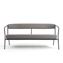 This inviting patio couch has minimalist design and easy-going air about it. Its sinewy aluminum wireframe has a dark grey powder-coated finish that lasts and protects the metal from rusting and other damage from exposure to the elements. The backrest flows into the arms giving the sofa a soft look that is reinforced by the ample cushioning. Both the upholstered back and quick-dry seat cushion are wrapped in long-lasting Agora Panama fabric. The fade and tear-resistant textile is long-lasting and comes in a lighter shade of grey that contrast the frame.