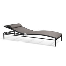 This splendid patio sunlounger has a flowing modern design and relaxed feel. Its gently curving frame is made from lightweight but durable aluminum with a dark grey powder-coating. The colorfast finish also helps to protect the metal from corrosion and other environmental damage. Its backrest is adjustable and can go from nineteen to forty-two inches in height. The seat and back are formed by an iron-colored flexible and tear-resistant Batyline sling. This synthetic PVC-coated textile is colorfast and provides form-fitting comfort. There's also a padded headrest for additional support.