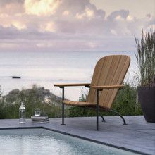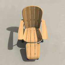 The reclined seat and fan-shaped backrest are constructed using wide slats of FSC-certified teak. This eco-friendly hardwood is naturally oil-rich, strong and won't rot. Its warm honey-colored woodgrain will transition over time to an elegant silver grey if left untreated. Unlike the traditional chair from Westport, the Boste version of the Adirondack Chair incorporates soft corners and rounded edges to give the seat a more refined yet welcoming appearance. The front lip of the seat curves slightly downward to provide a more ergonomic shape to accommodate the bend of the knee. Additionally, the chair's wide armrests provide generous room for relaxing.