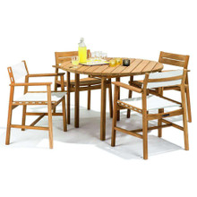 This classically designed teak dining arm chair has the graceful lines you expect from Scandinavian furniture, but the quietly elegant style gives the Djuro collection the versatility of being at home indoors as a laid back lounge or dining set, or on the deck or poolside as a stylish entertainment area. The Djuro Armchair is also available with a white batyline seat and coordinates with three different dining tables.