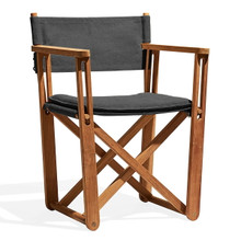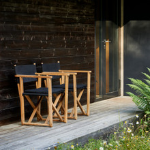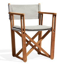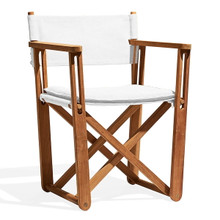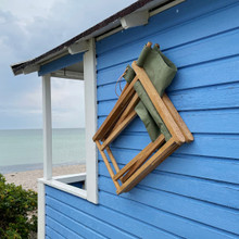 This casual folding patio lounge chair has a chic teak frame and fabric seat and back slings in a number of Sunbrella® and natural canvas colors.