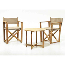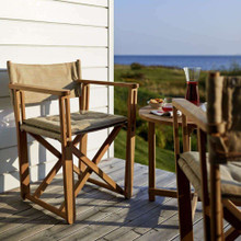 This simply elegant teak side table is a perfect companion to the Kryss Chair. It's minimalistic Scandinavian design was inspired by the campaign furniture of British Egyptian exploration campaigns. Like the chairs, this round top wooden table is easy to collapse, transport and store.