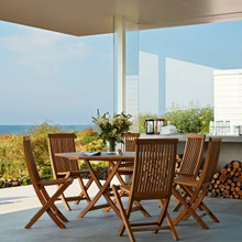 This iconic Scandinavian teak chair is a testament to the inherent beauty created when form and function blend seamlessly. Practical, comfortable and stunning, the Viken collection is often imitated but never matched in its unique elegance. Perfect for balconies, verandas and decks, the set of foldable chairs and hexagon topped tables are easily stored when the season changes to inclimate weather. Sunbrella seat cushions in black and white are also available for added comfort.