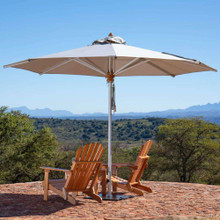 This bold center post patio umbrella combines an anodized aluminum pole with eucalyptus hubs and a canopy in three shapes, multiple sizes and various colors of Sunbrella textile.