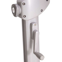 This contemporary cantilever umbrella is opened and closed with a hand crank and the smart canopy attachment system allows the fabric to be easily removed for maintenance or cleaning. There's even an extendable center pole bracket on which a light can be attached.