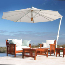 This spacious offset patio umbrella has an anodized aluminum frame that rotates 360° with an octagonal, square or rectangular canopy that features eucalyptus hubs and comes in multiple Sunbrella fabric colors.