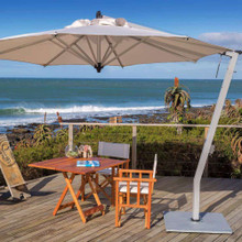 The Picollo Cantilever Umbrella is available with an octagonal or square canopy in sixteen vibrant Sunbrella colors or classic neutral tones. This premium outdoor textile is fade and UV-resistant, easy to clean and allows air to pass through it - creating a comfortable area below.