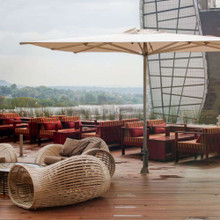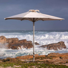 This robust centerpost umbrella has a chic look and is designed to withstand powerful winds. Its wide high-grade stainless steel pole and hubs, and corrosion-resistant aluminum ribs are engineered for strength and durability in the most extreme weather conditions. The octagonal or square canopy has reinforced connection points and is opened and closed by means of a built-in quattro pulley with a high-tech rope locking system. This ensures smooth operation of the commercial-grade market umbrella day in and day out.